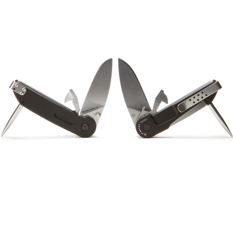La clip è un altro dei punti d’ innovazione,è reversibile, posizionata posteriormente alla lama e abbraccia il codolo del coltello in modo che, quando il coltello è inserito in una tasca, non sporga il codolo ma rimanga visibile solo la clip.