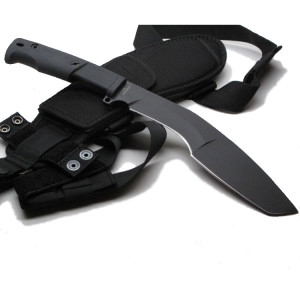 Il “kukri”, lo strumento polivalente Nepalese reso famoso dal Rgt. Gurka, a servizio di sua maestà Britannica e derivato dalle antiche spade falcate greche, altro non è che un machete dal taglio avanzato. Questo avanzamento del taglio gli permette di replicare la funzionalità di un’ accetta  pur mantenendo la polivalenza della lama lunga. Per lo sviluppo di un attrezzo di questa categoria sono stati fusi concetti antichi e moderni. Le arrotrature sono differenziate: vicino all’impugnatura la lama è arrotata a rasoio, questa arrotatura consente di raggiungere un angolo di affilatura stretto senza intaccare eccessivamente lo spessore del materiale del dorso che deve rimanere massiccio.