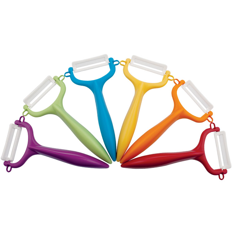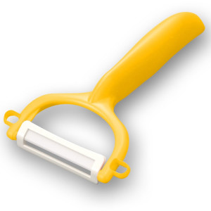 Questo pela ortaggi in ceramica è un accessorio leggero, pensato anche per mancini.