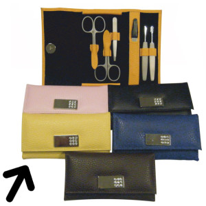Set manicure beige con chiusura in acciaio inox impreziosita da brillantini, munito di: