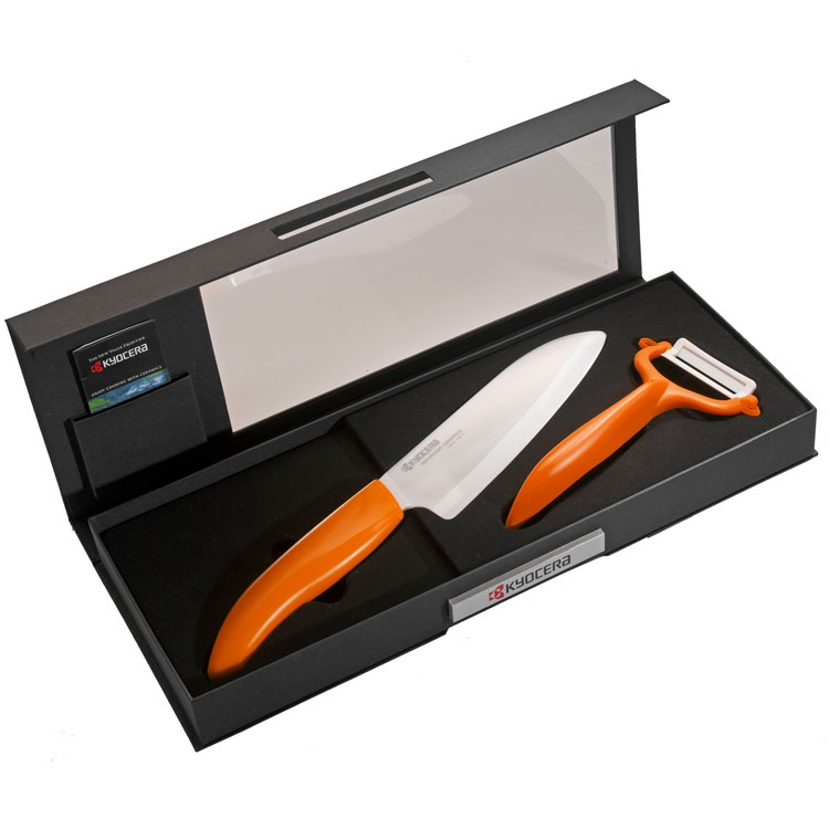 Set Regalo Santoku E Pelaortaggi Manico Arancio