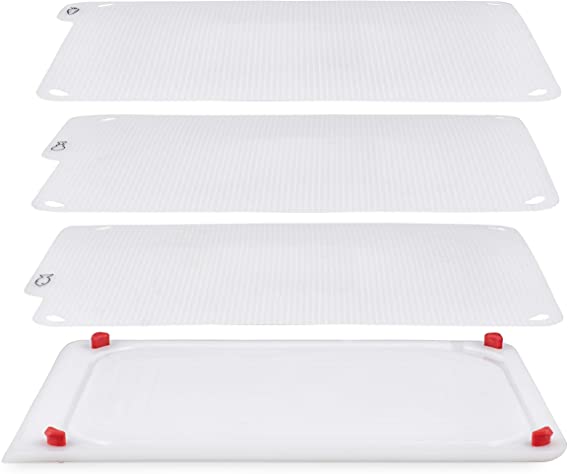 Il tagliere e i suoi 3 tappetini offrono diverse opzioni flessibili per tagliare gli alimenti. Per non sporcare la scanaslatura sul bordo raccoglie i succhi e i liquidi degli alimenti. I piedini antiscivolo forniscono una superficie di taglio stabile e i simboli sui tappetini facilitano l’identificazione ed evitano la contaminazione incrociata. La trama sulla superficie impedisce agli alimenti di scivolare design impilabile e flessibile.